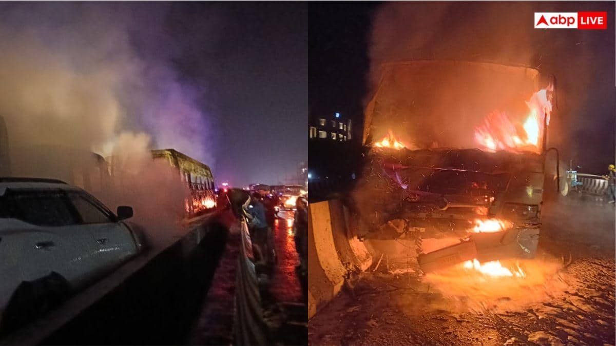 देहरादून में मोतीचूर फ्लाईओवर पर कई गाड़ियां आपस में टकराईं, लगी आग, अफरा-तफरी मची